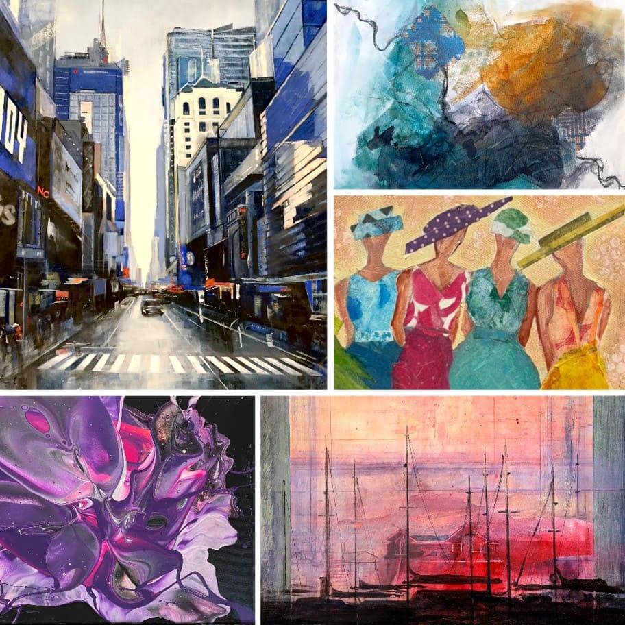 42nd Street by Oksana Berzinsh, Resilience Woven Year by Year by Samar Hussaini, Forever Young by Monica Mangan, Red Inlet by John DiLorenzo, Flowery Wonder by Wilma Van der Pol